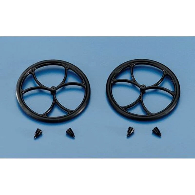 Revtec – Airplane Wheels – Rubber W/ Nylon Rim – 100mm – Shaft Dia. 4mm – 2 Pcs