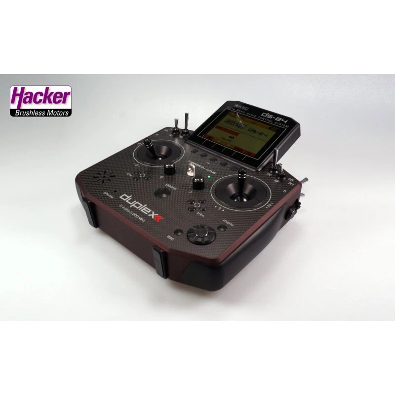 Sender DS-24 Dark Red Carbon Line Multimode (Auslieferzustand Mode 2, Steuermode sehr einfach wechselbar), Senderakku eingebaut, Ladegerät für Senderakku, stabiler Transportkoffer, spezieller Backup Empfänger RSAT-900Mhz (Info dazu, siehe unten), Sendergurt