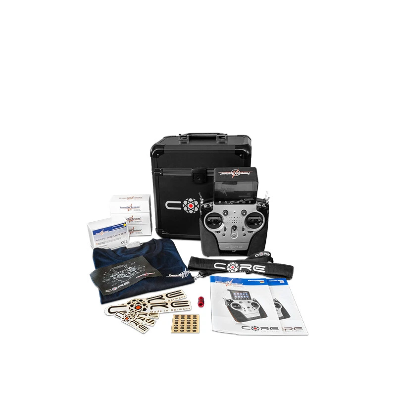 Bei der Funkstrecke findet das bereits erprobte Frequenzsprungverfahren der Firma Weatronic Anwendung. Dieses Verfahren ist für höchste Störsicherheit und Reichweite bekannt. Der CORE hat eine redundante Auslegung der Funkstrecke, welche durch den Empfänger überwacht wird. Ein Defekt z.B. einer Sendeeinheit wird vom Empfänger sofort via Telemetrie signalisiert. Die Stromversorgung des CORE ist PowerBox typisch redundant ausgelegt. Das bedeutet, dass zwei separate Li-Ion Akkueinheiten mit je 3400mAh/7,2V und die gesamte Spannungsregelung doppelt verbaut sind, ein Merkmal, welches aktuell nur der CORE besitzt. Damit erreichen wir eine Laufzeit von ca. 10 Stunden und das bei voller Bildschirmhelligkeit und maximaler Auslastung der Systems.
