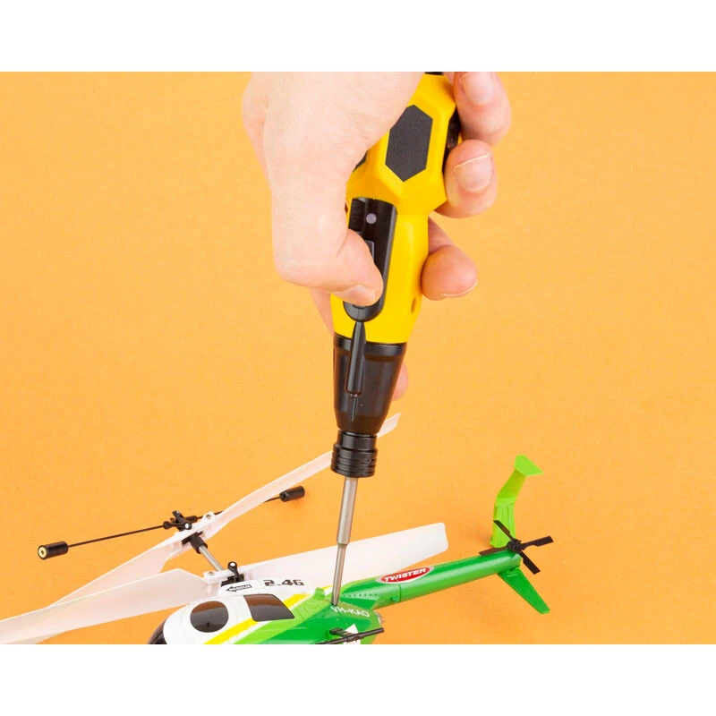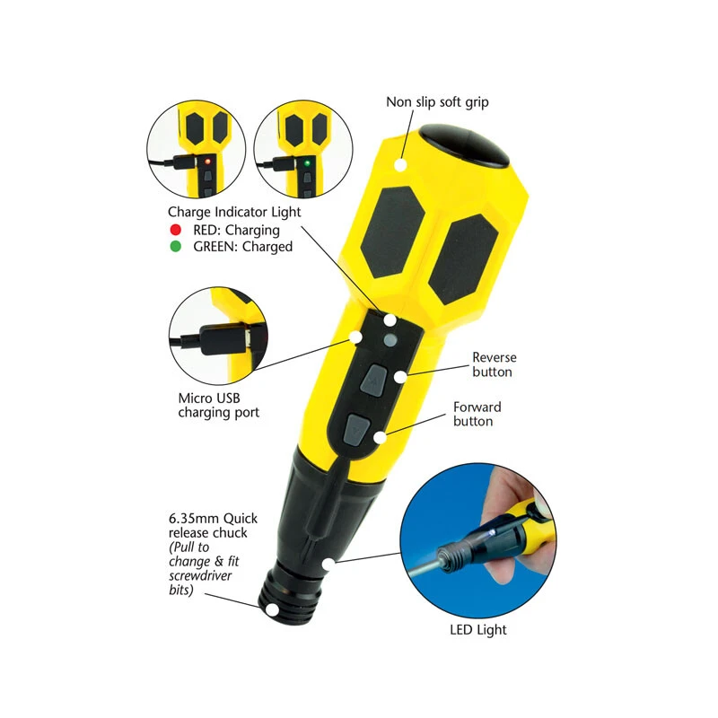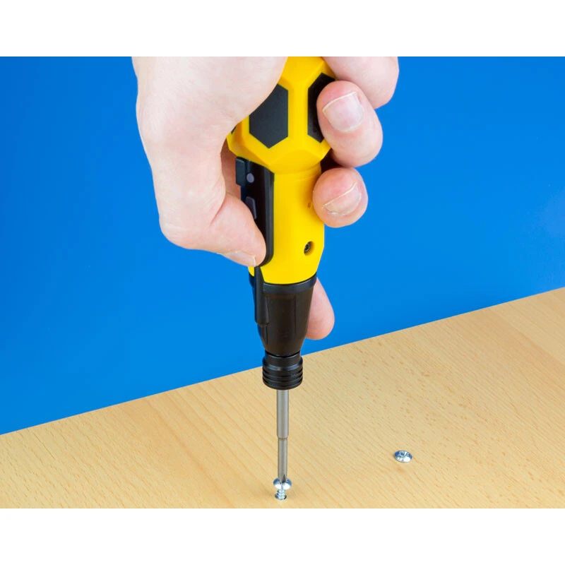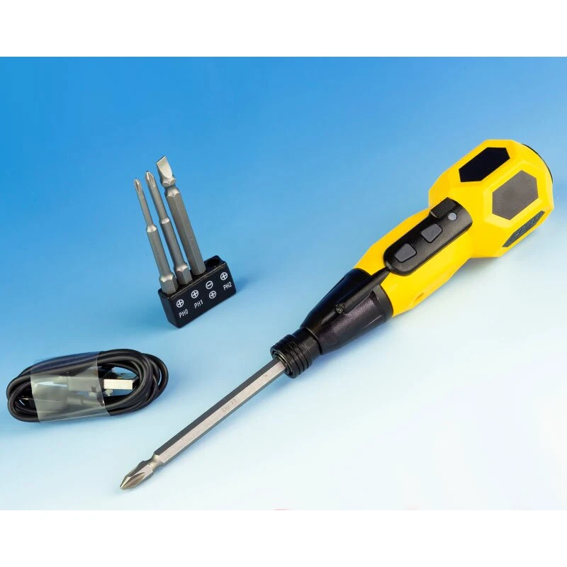 Ein leistungsstarker, wiederaufladbarer Schraubendreher im Taschenformat für Heimwerker, Hobby und Elektronik. Dieser Schraubendreher ist ideal für enge Räume und knifflige Stellen, wo die schmale Spitze und das LED-Licht Zugang und eine gute Sicht ermöglichen. Ausgestattet mit einem eingebauten wiederaufladbaren Lithium-Ionen-Akku mit Micro-USB-Ladekabel, der in nur 60 Minuten vollständig geladen ist.